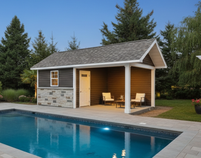 POOL HOUSE SHEDS A pool house shed is a small, standalone structure typically located near a swimming pool, designed to provide a convenient and functional space for poolside activities and storage